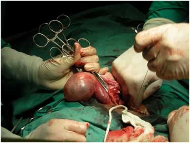 - Выполняется разрез брюшной стенки;