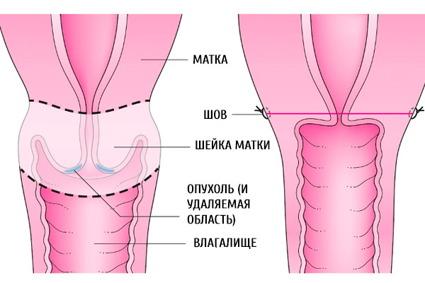 Как следует из названия, данный метод хирургического вмешательства при раке шейки матки предполагает полное удаление шейки матки, что осуществляется через влагалище. Теоретически, если применять этот метод как единственный, существует высокая вероятность того, что онкологические клетки могут остаться в окружающих тканях. Поэтому этот подход обычно дополняется радиотерапией. Это означает, что пациентка проходит курс облучения радиоволнами, которые помогают подавить рост новых раковых клеток и уничтожить уже существующие. Хотя радиотерапия может вызывать неприятные ощущения, ее использование значительно увеличивает эффективность лечения.