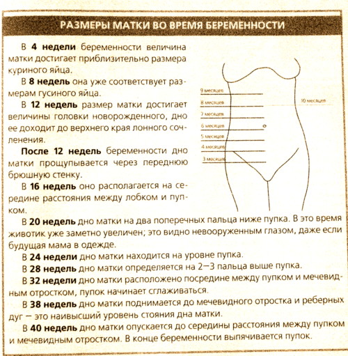 | Высота дна матки в см | 8-9 | 10-11 | 12-13 | 14-19 | 16-21 | 18-24 | 21-25 | 23-27 | 25-28 | 26-31 | 29-32 | 31-35 | 32-35 | 32-37 | 35-38 | 34-35 |