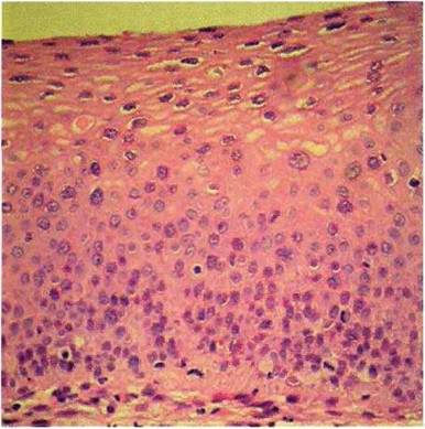 - Ядра, значительно более тёмные по сравнению с другими эпителиальными клетками;