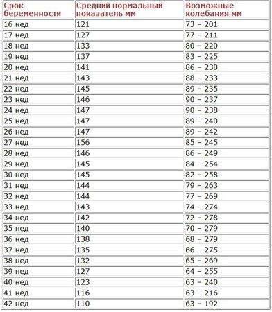 Существуют установленные нормы амниотического индекса во время беременности. Давайте представим их в виде таблицы.