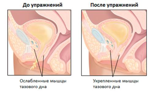 Разработаны для того, чтобы держать мышцы влагалища в тонусе. Это помогает избегать повторного возникновения патологии. Эффект от упражнения при дряблости мышц показан на картинке.